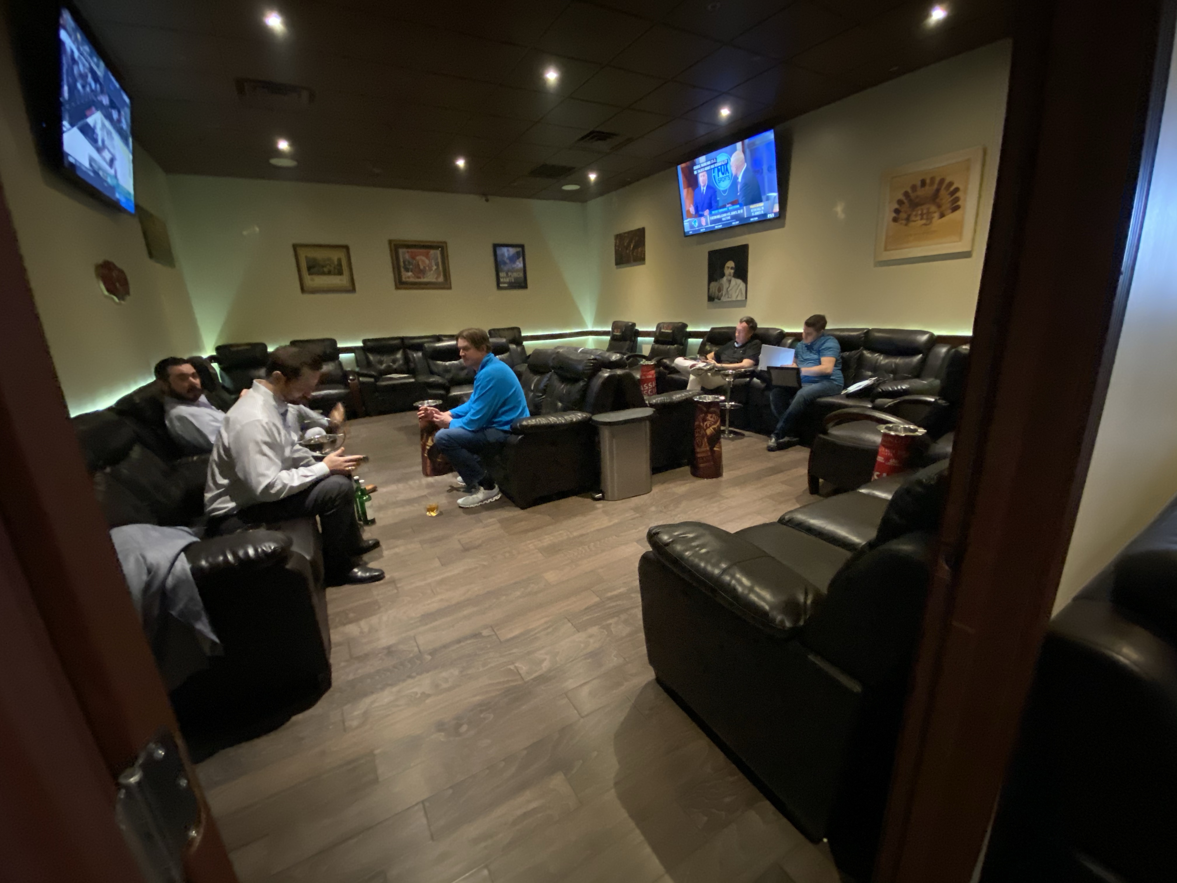 In what looks like a smallish shop in a shopping center, the Warehouse lives up to its name as soon as you step in. The humidor is very large and has an excellent selection and they boast more than one large lounge with a most impressive wall-sized TV in one lounge. They painted the wall to make it a screen for their projector.