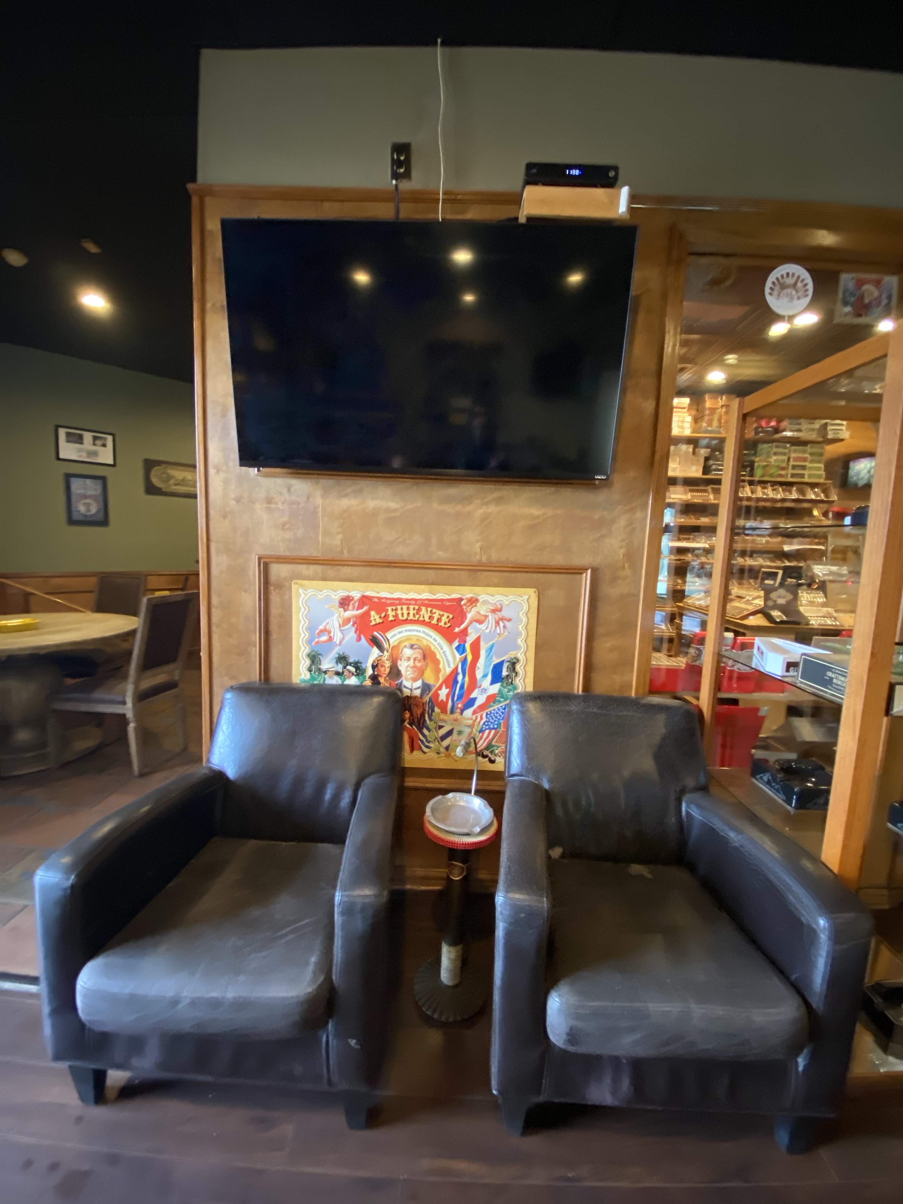 The lounge was clean and good-sized with many chairs. The humidor had two parts with a good variety of prices and brands. The staff was helpful and busy keeping up.
