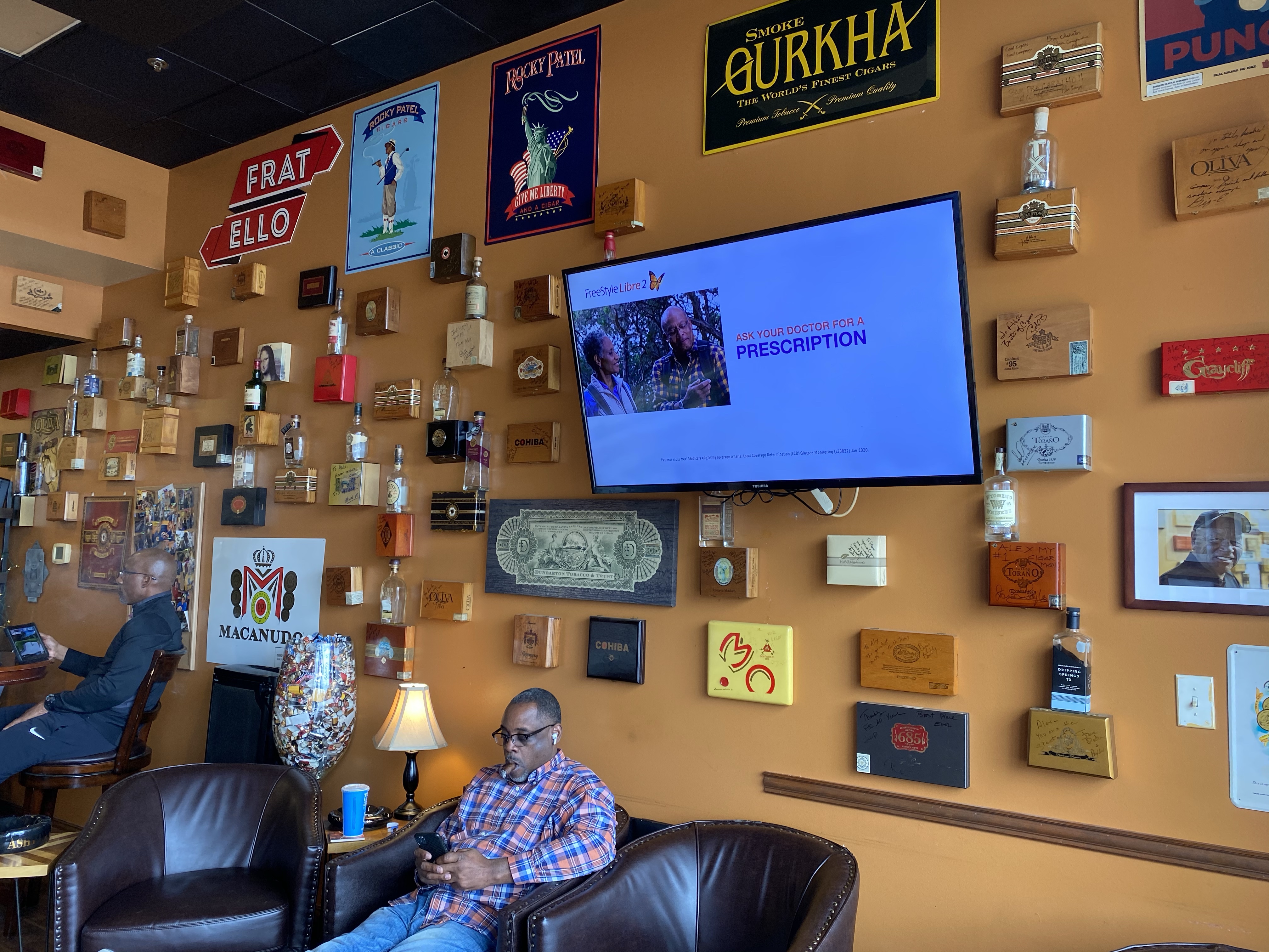 The shop was very well designed and well decorated. The owner was knowledgeable and accommodating. This is a very small shop with a very small and very clean lounge area where several people were working and smoking. They seem to have a very loyal customer base and made me wish I could visit their second location. The humidor was small but had a good selection and there was a couple of chairs in front to smoke outside.
