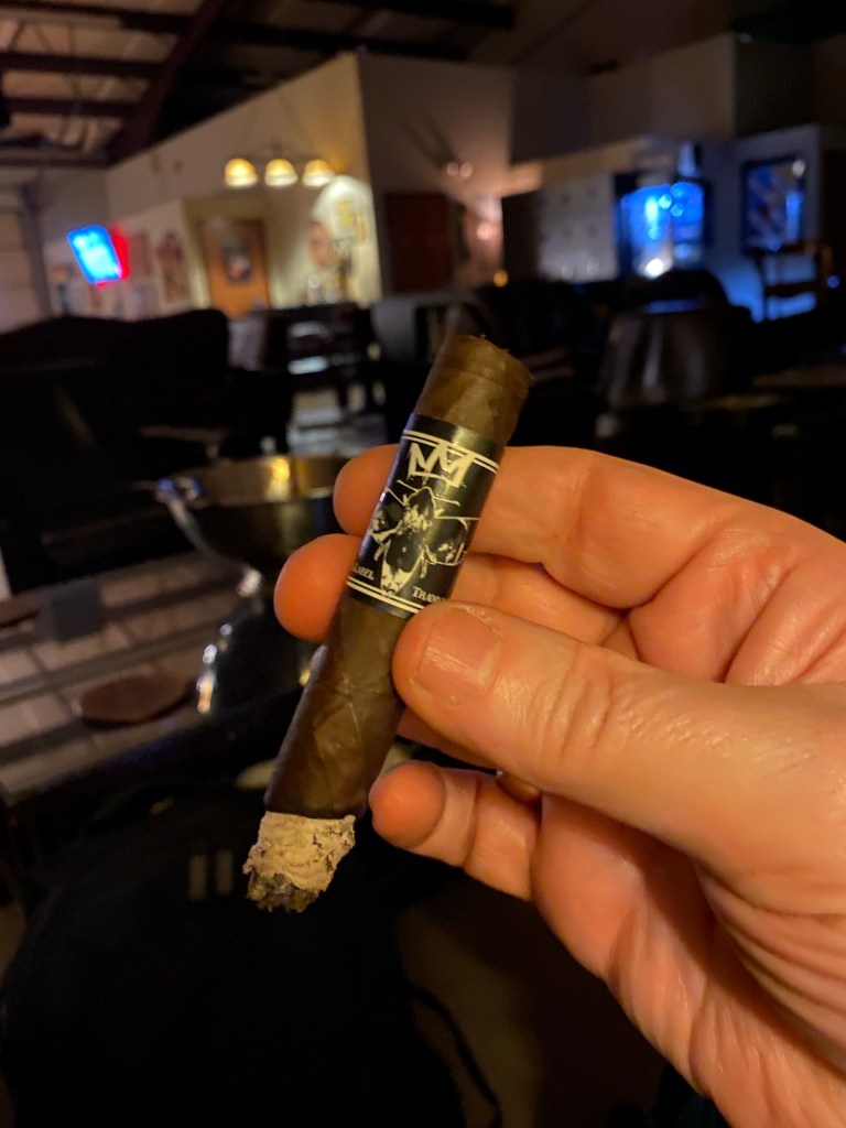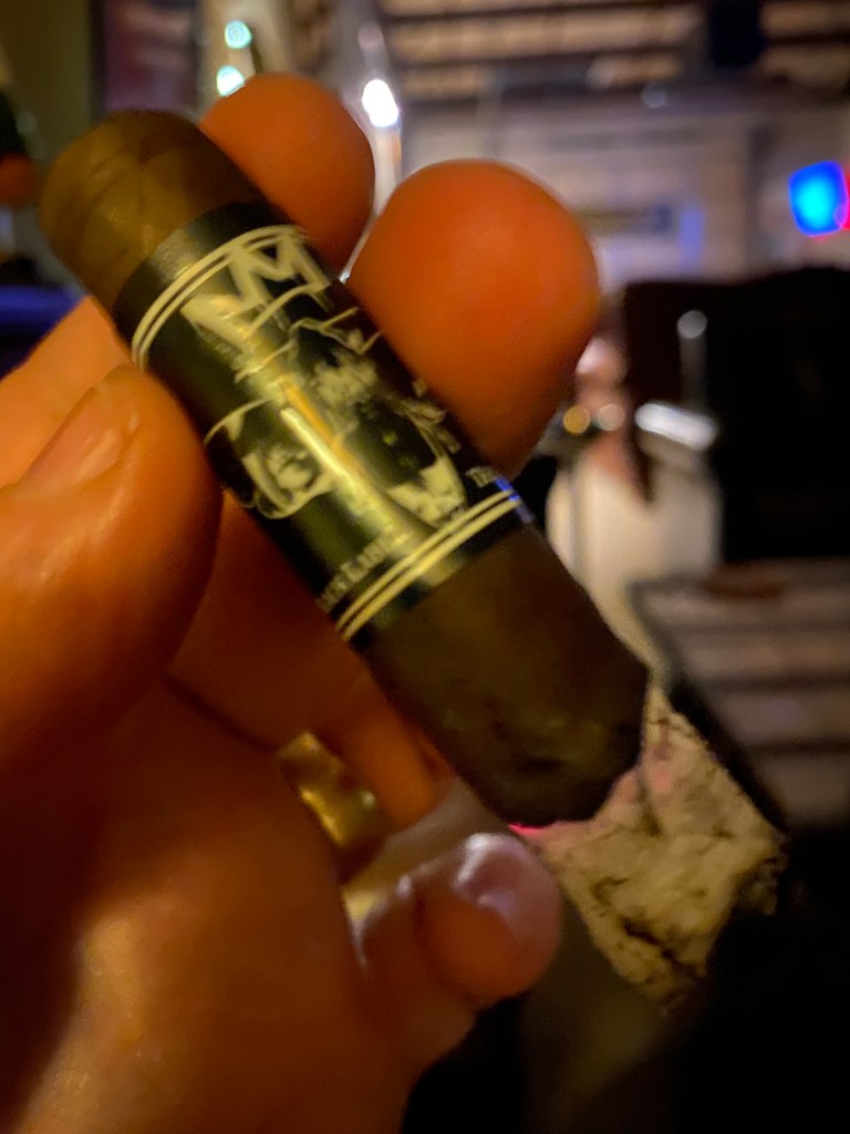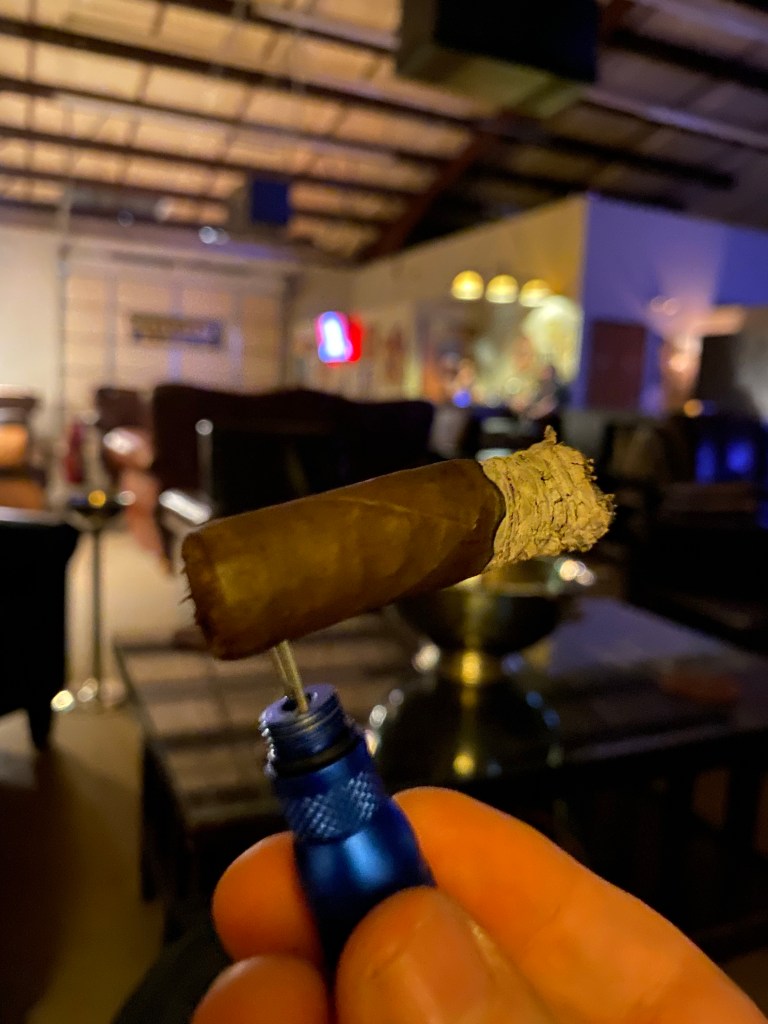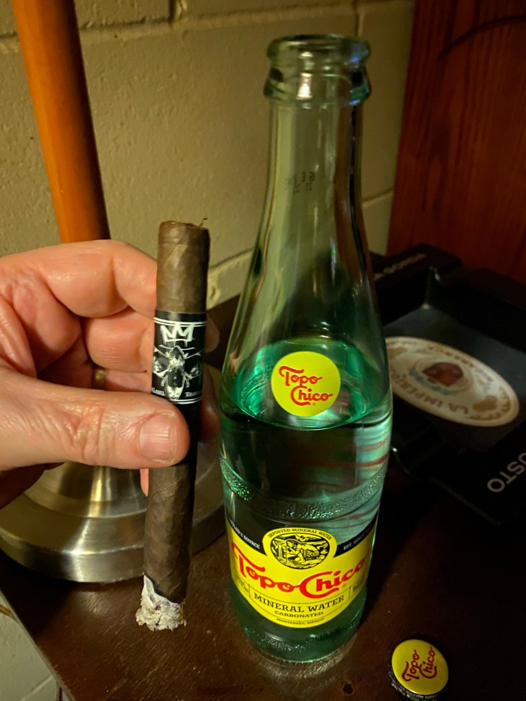 This is a beautiful cigar with a smooth dark wrapper. Light notes of sweet cocoa are in the foot. The cold draw is perfect. Today’s beverage is a cold Topo Chico.