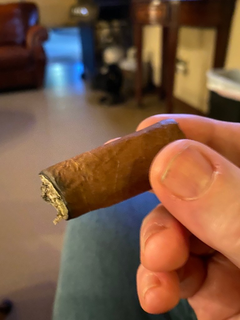 Approaching the final inch the flavor profile remains constant and complex. The retohale remains very smooth and pleasant. The ash continues to be less than solid but the burn remains even.