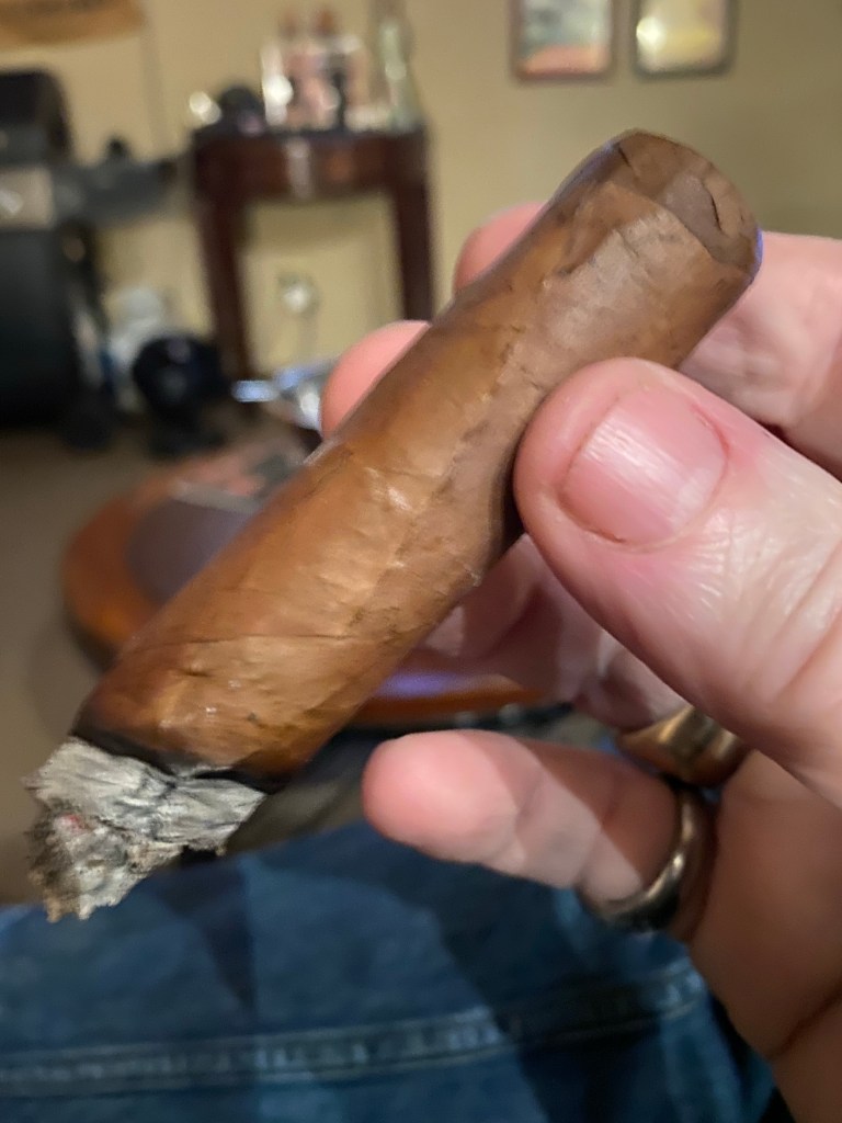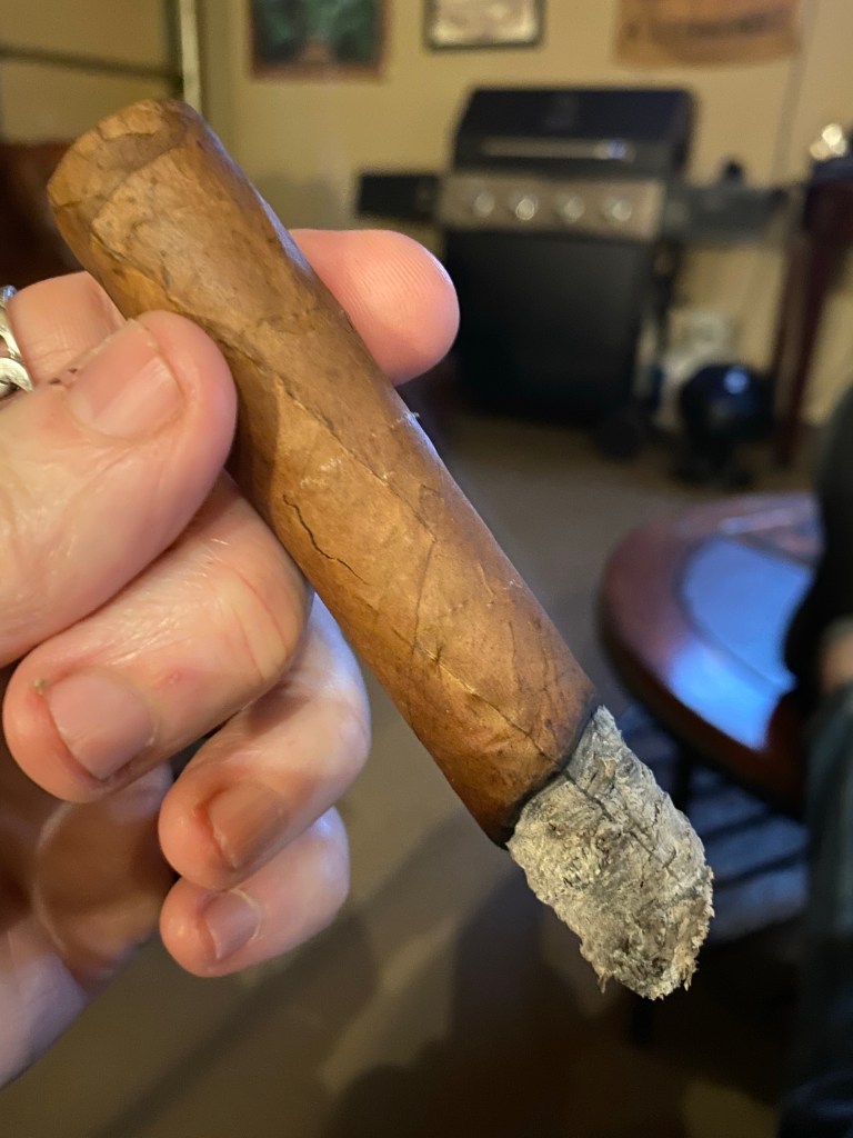 In the first third the flavors take on a bit saltiness, but not unpleasantly so. The ash remains fairly solid and the burn is just a bit off of even.
