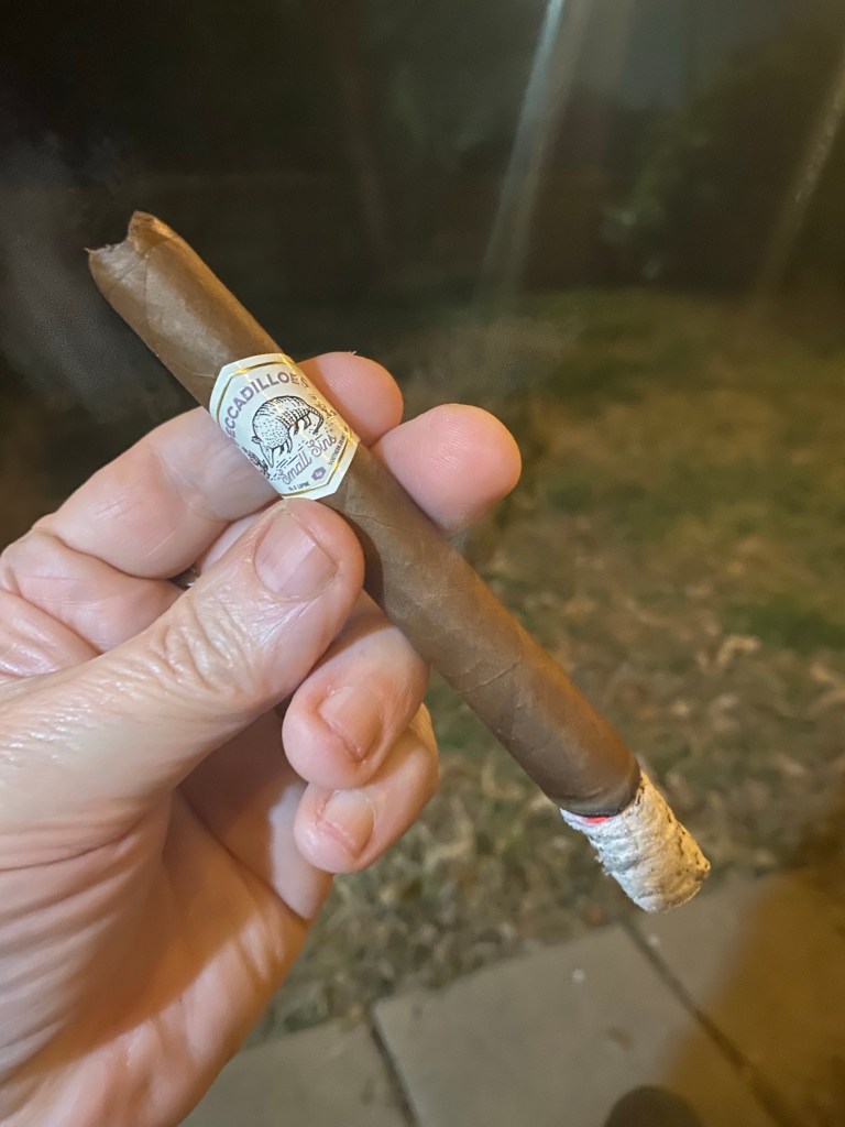 In the first third the flavor profile remains steady. The wood notes are more oak than cedar. The ash dropped on me but didn’t burn anything. The burn remains even.