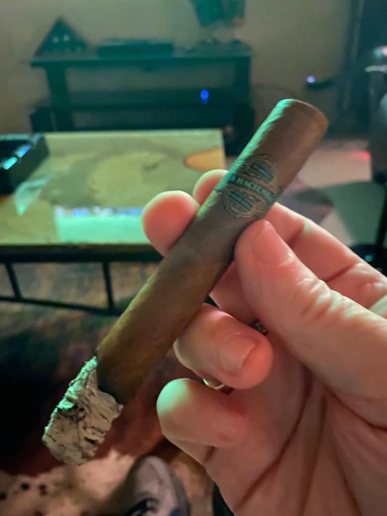 During the second third there is a light mustiness that purges out easily. The flavor profile remains very good. The ash remains fairly solid, tapping every inch or so. The burn has returned to even. The finish is smooth and somewhat savory.