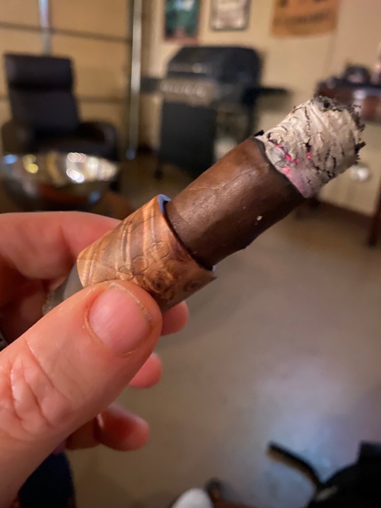 During the second third the flavor profile picks up a bit with some light notes of earth and oak. The ash remains solid and the burn remains even.