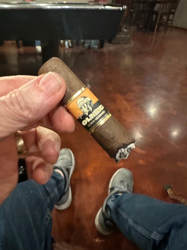 Initial flavors are lightly sweet and woody with an earthy base. The early retrohale is woody with black pepper notes. The ash drops every time I put the cigar down. The burn is a bit diagonal.