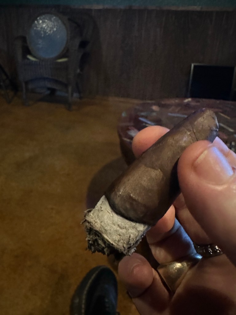 Initial flavors are very rich tobacco with hints of coffee and a dusting of white pepper over an earthy base. The ash is medium grey and looks fairly solid. The burn is mostly even and I think it will be fine with revolving. The early retrohale is mostly smooth with a hint of white pepper.