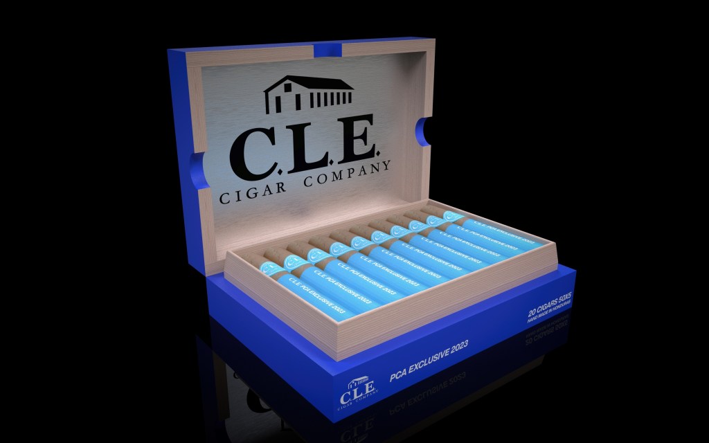 The C.L.E. PCA 2023 Exclusive is offered in four Vitolas and comes in twenty count boxes. The top of the box doubles as an ashtray.