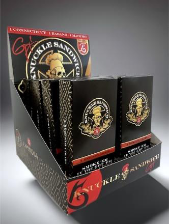 The Knuckle Sandwich Robusto 3-Pack Sampler will be an ongoing product line. Each Knuckle Sandwich Robusto 3-Pack Sampler is housed in a 10-Pack display tray, with the 3-Pack Sampler retailing for $29.95 MSRP.