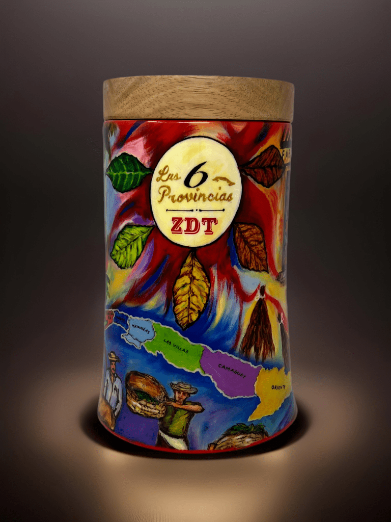 Once again, Espinosa Premium Cigars teamed with local Cuban artist Eden Gutierrez to collaborate on this project. The Las 6 Provincias ZDT is presented in a 20-count ornate ceramic jar, which is decorated throughout with artistic renderings of the tobacco making process.