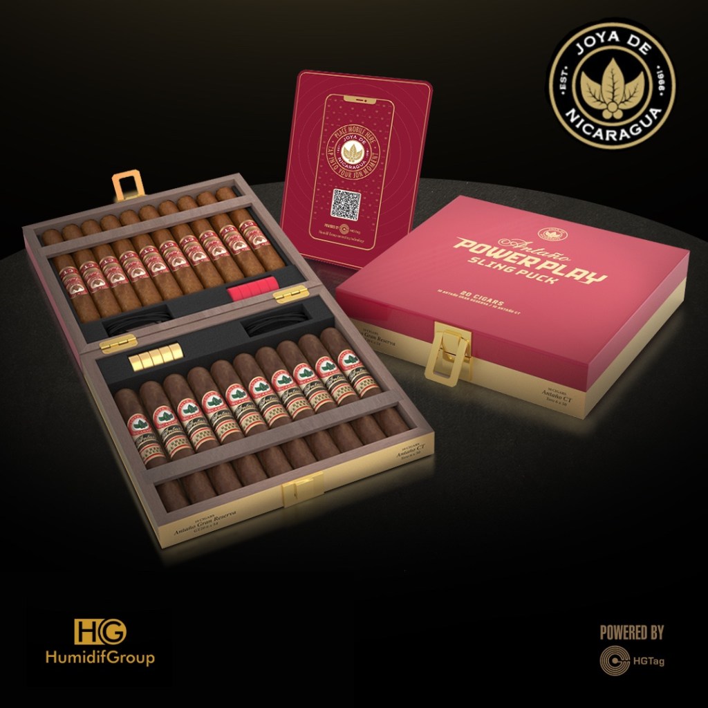 July 19,2023 – HumidifGroup and Joya De Nicaragua, the renowned cigar manufacturer known for its commitment to quality and innovation, are proud to release an extraordinary project that combines the pleasures of cigar smoking with the excitement of a captivating game. The new custom designed JDN cigar box, Antaño Power Play Sling Puck, delivers a one-of-a-kind experience and creates unique “JDN Moments” for cigar enthusiasts.