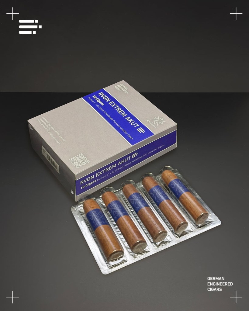 | Hamburg, Germany, March 26, 2026: German Engineered Cigars (GEC), the Hamburg-based premium cigar brand, just announced AKUT – the cigar industry’s first pharmaceutical-style blister packaging for premium longfiller cigars. The format launches with two blends: RVGN Extrem AKUT and Kraftwerk AKUT. |